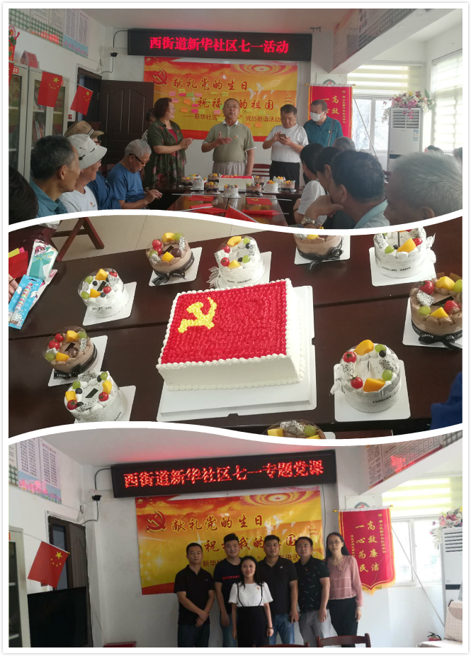 商貿(mào)公司黨支部黨員與新華社區(qū)共建開展以“獻(xiàn)禮黨的生日,祝福我的祖國”為主題的慶七一主題活動(dòng),黨員親筆書寫對(duì)黨和祖國的祝福,社區(qū)老黨員帶領(lǐng)全體黨員齊聲高唱《永遠(yuǎn)跟黨走》,在熱烈的歌聲中大家切蛋糕,共同慶賀黨的99歲生日,大家邊吃著蛋糕,邊說著今天的幸福生活。